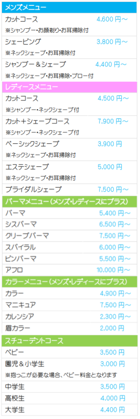 女性のお客様でパーマ・カラーにシェイブコースをご希望される方、トータル料金から500円サービスになります。